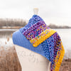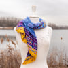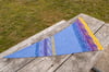 The shawl is worked in one piece, starting at the narrow end. The contrast rows are worked so that you only need to weave in ends at the start and end of each color, rather than at the end of each row.