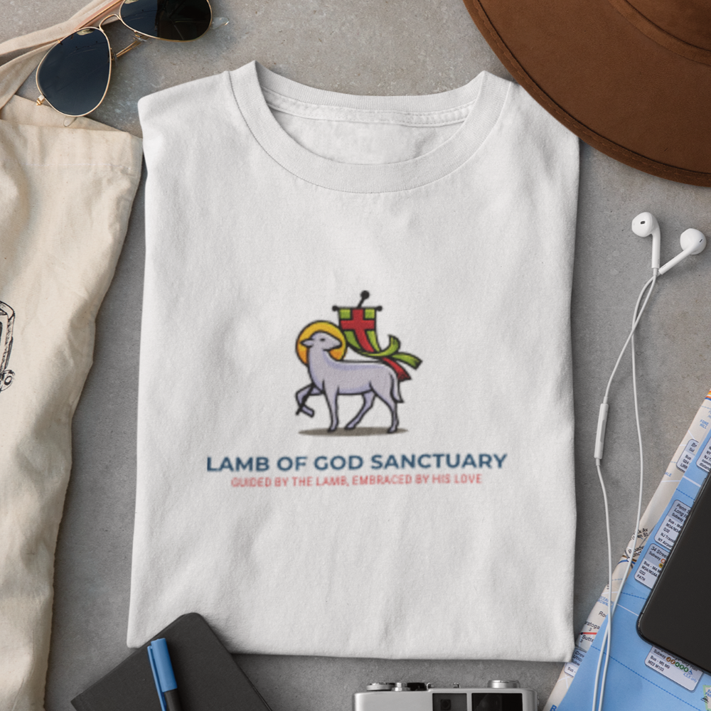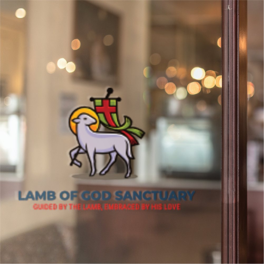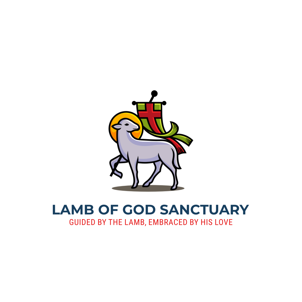 With its bold yet graceful design, this logo evokes trust, holiness, and a message of love and redemption. The accompanying tagline, "Guided by the Lamb, Embraced by His Love," reinforces the identity of a Christ-centered community.