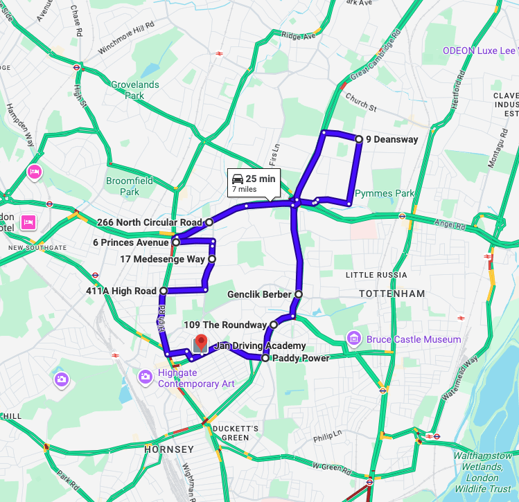 Wood Green (London) Driving Test Routes | 6 Google Maps Practice Routes