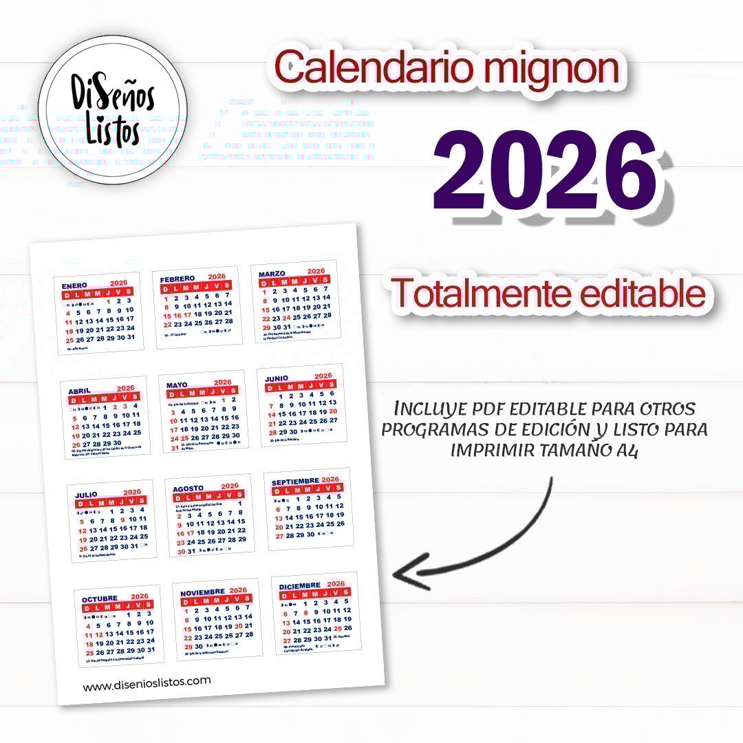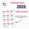 ✨ Calendario Mignon 2026 para Descargar e Imprimir ✨