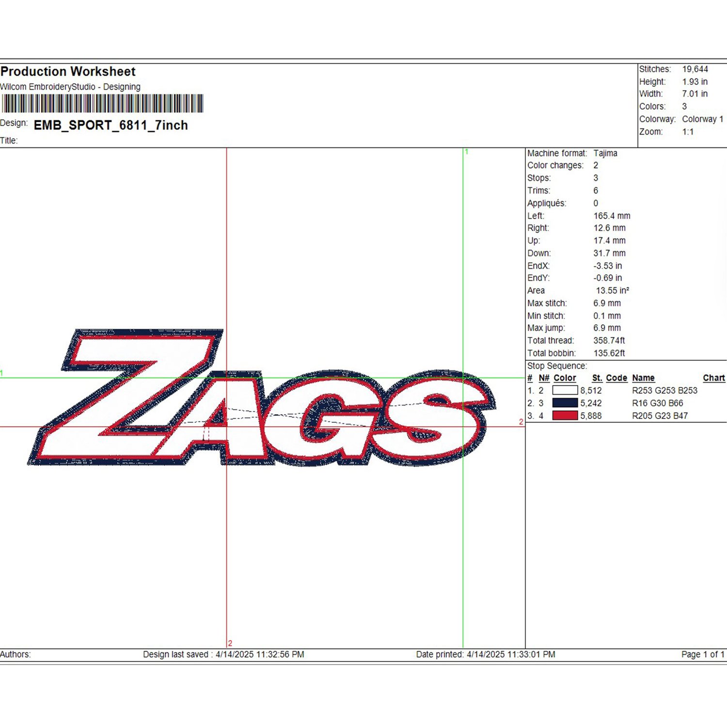 Gonzaga Bulldogs Zags Logo Embroidery Designs, NCAA Gonzaga Bulldogs Machine Embroidery Designs, NCAA Logo embroidery designs, Ncaa GU Bulldogs Logo, Digital Download