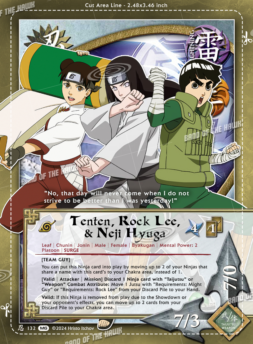 n132 - Tenten, Rock Lee and Neji Hyuga Ninja card from our Might Guy card set for Naruto CCG.