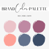 Bring your brand's visual identity to life with our exquisite Sunset Color Palette, a curated selection of moody and rich hues perfect for entrepreneurs and small businesses. This stunning palette features a harmonious blend of pale rose pink, lavender, purple plum, coral, ash blue, and dark charcoal blue, offering a versatile foundation for your branding design. Ideal for website color schemes, brand packaging, and marketing materials, these colors will elevate your brand's appeal. Our palette includes detailed Hex Codes, RGB, and CMYK values, ensuring seamless integration into your projects. Whether you're crafting social media graphics or refining your brand identity, this collection provides the perfect balance of sophistication and creativity - compatible with Canva, Wordpress, Goodnotes, and Procreate. Enhance your brand's presence and captivate your audience with these timeless and evocative brand colors.