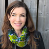 The Beveled Cowl features four colours of cables woven together, forming a bold, graphic motif.