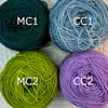 To make both Hat & Cowl: 2 skeins each of MC1 & MC2; 1 skein each of CC1 & CC2