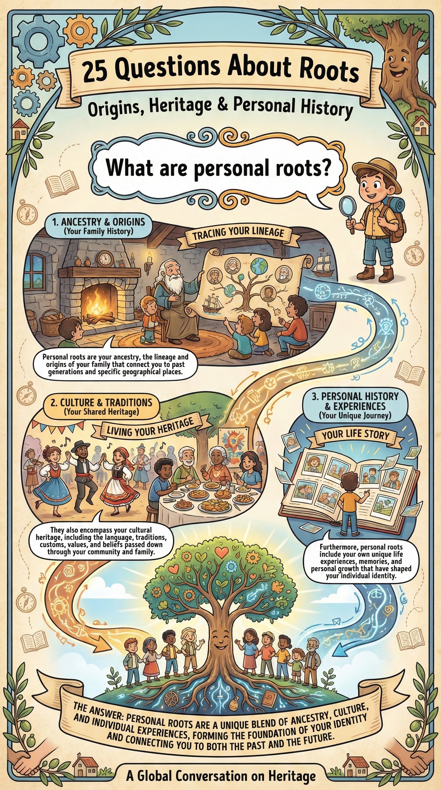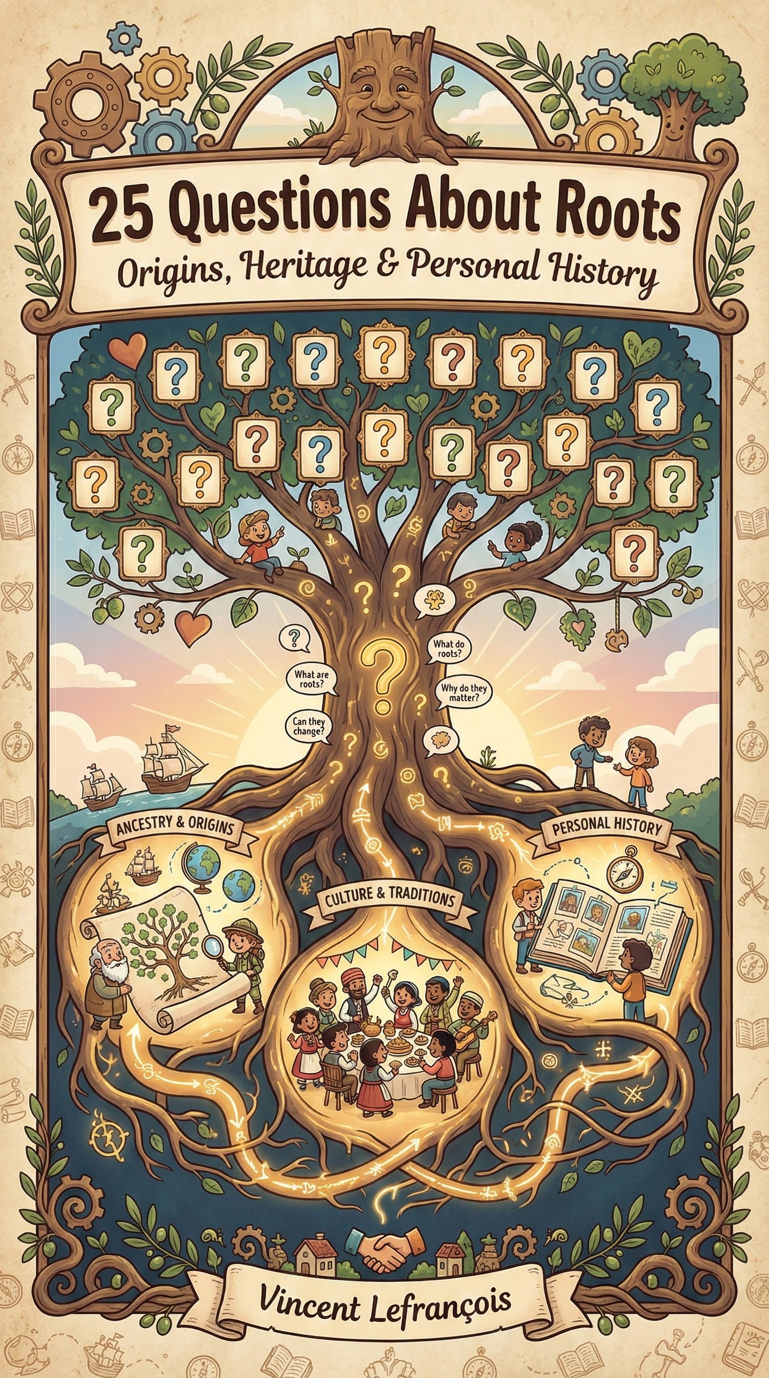 25 Questions About Roots is a beautifully illustrated educational book that explores how family history, culture, memories, and origins influence identity, values, and the way we see ourselves.