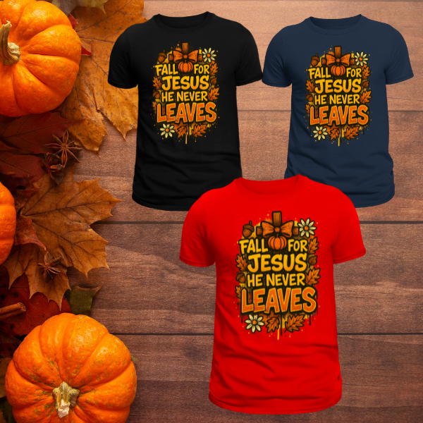 Celebrate faith and the beauty of the season with our Fall for Jesus T-Shirt. Perfect for cozy fall days, pumpkin patch outings, and church gatherings, this tee combines autumn vibes with a message of faith you can wear proudly. Crafted with soft, durable fabric, it’s designed for everyday comfort while making a bold seasonal statement.