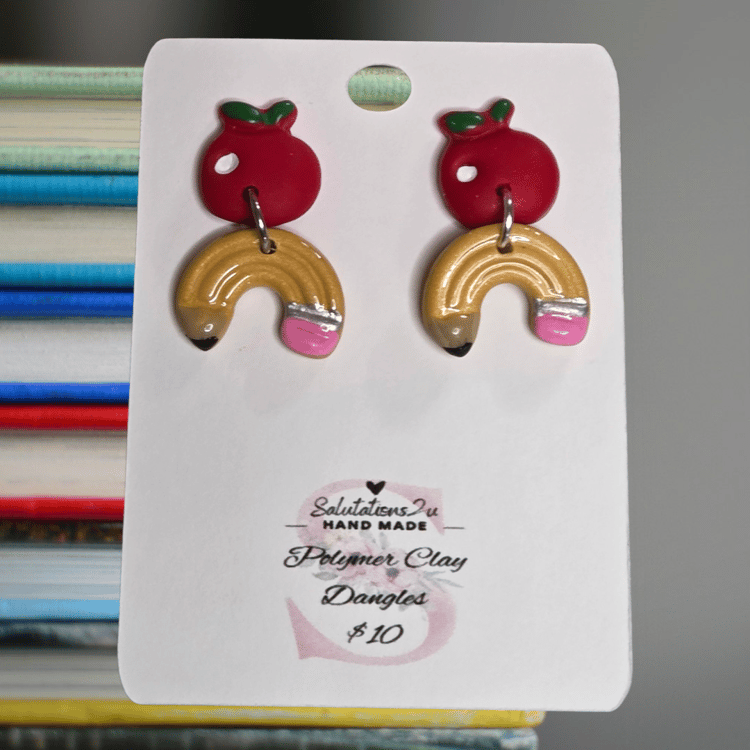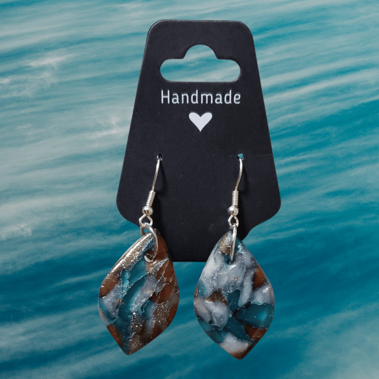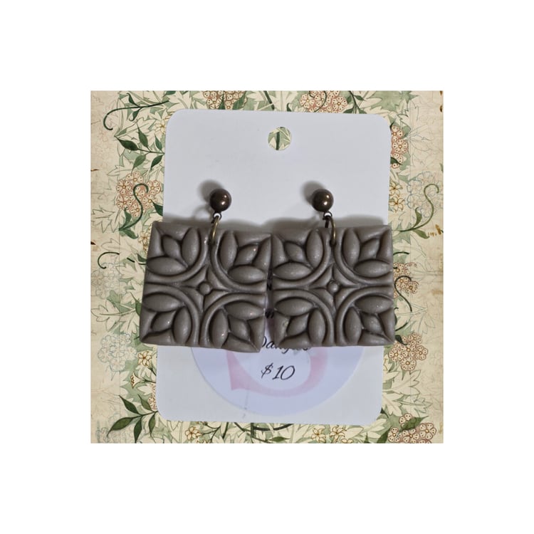 These lightweight polymer clay dangle earrings feature a soft floral pattern with warm, earthy tones. Finished with simple brass stud posts, they’re easy to wear and add a natural, handmade touch to everyday outfits or casual dress looks.