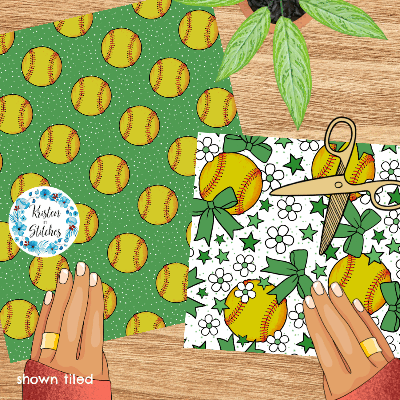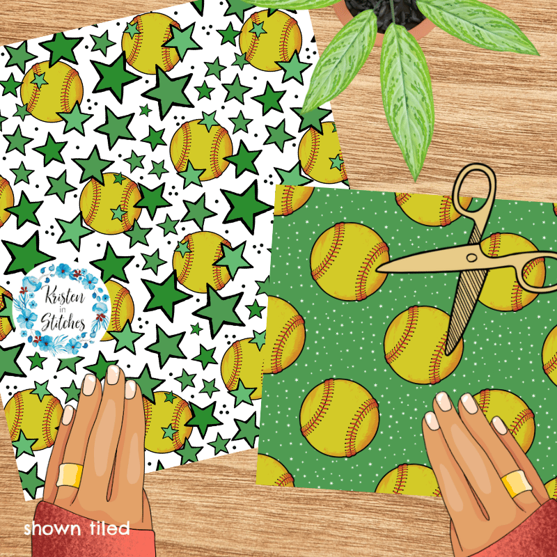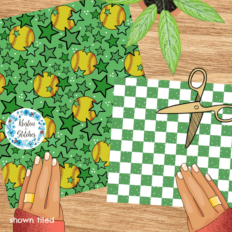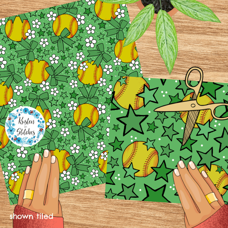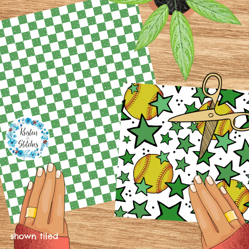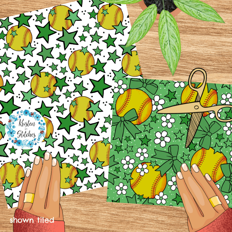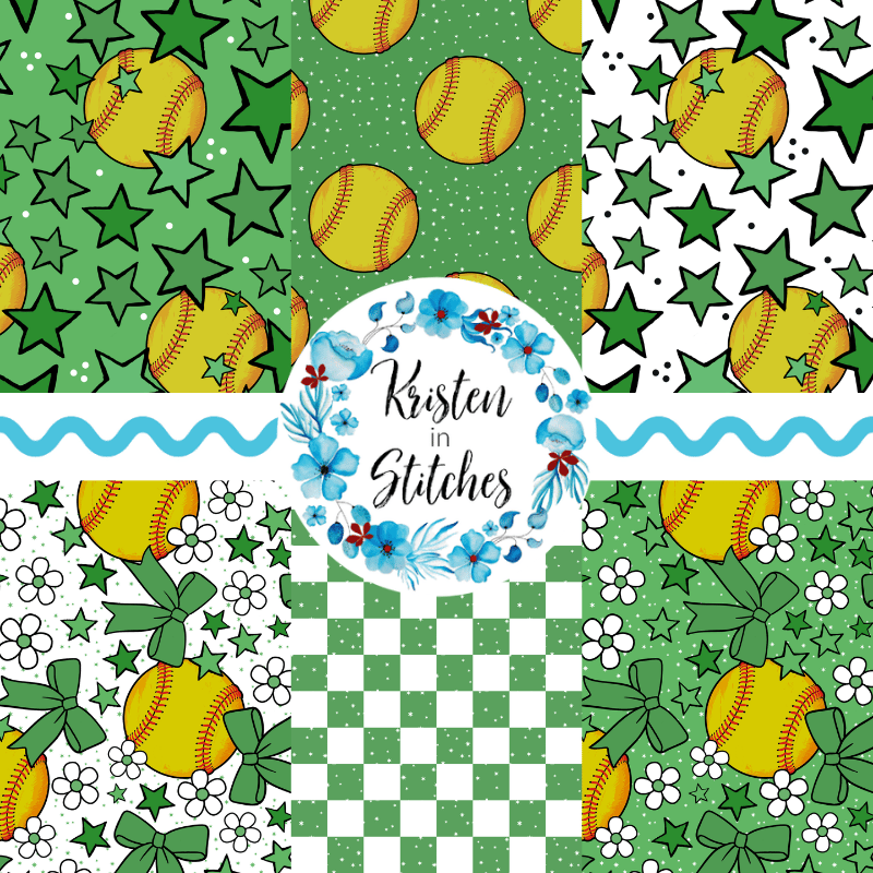 Mix and match softball patterns in green.