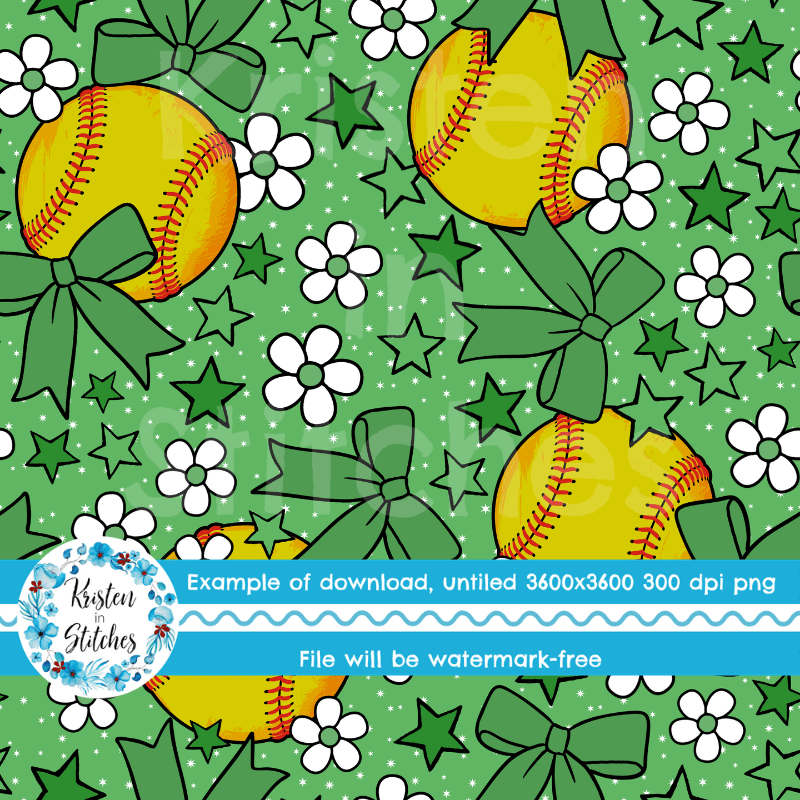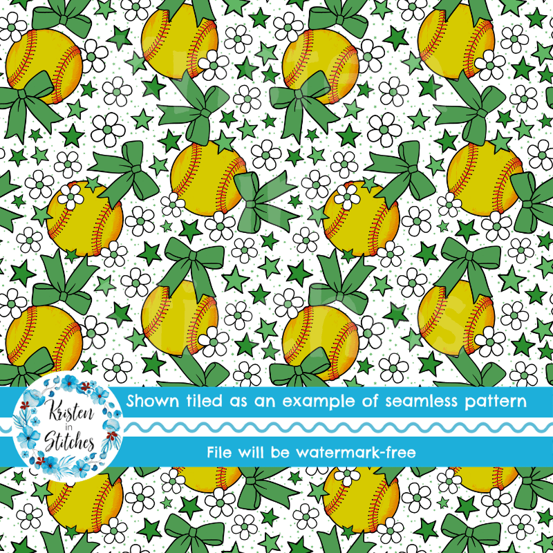 Team Spirit Softball Seamless Pattern Set of 6, Green