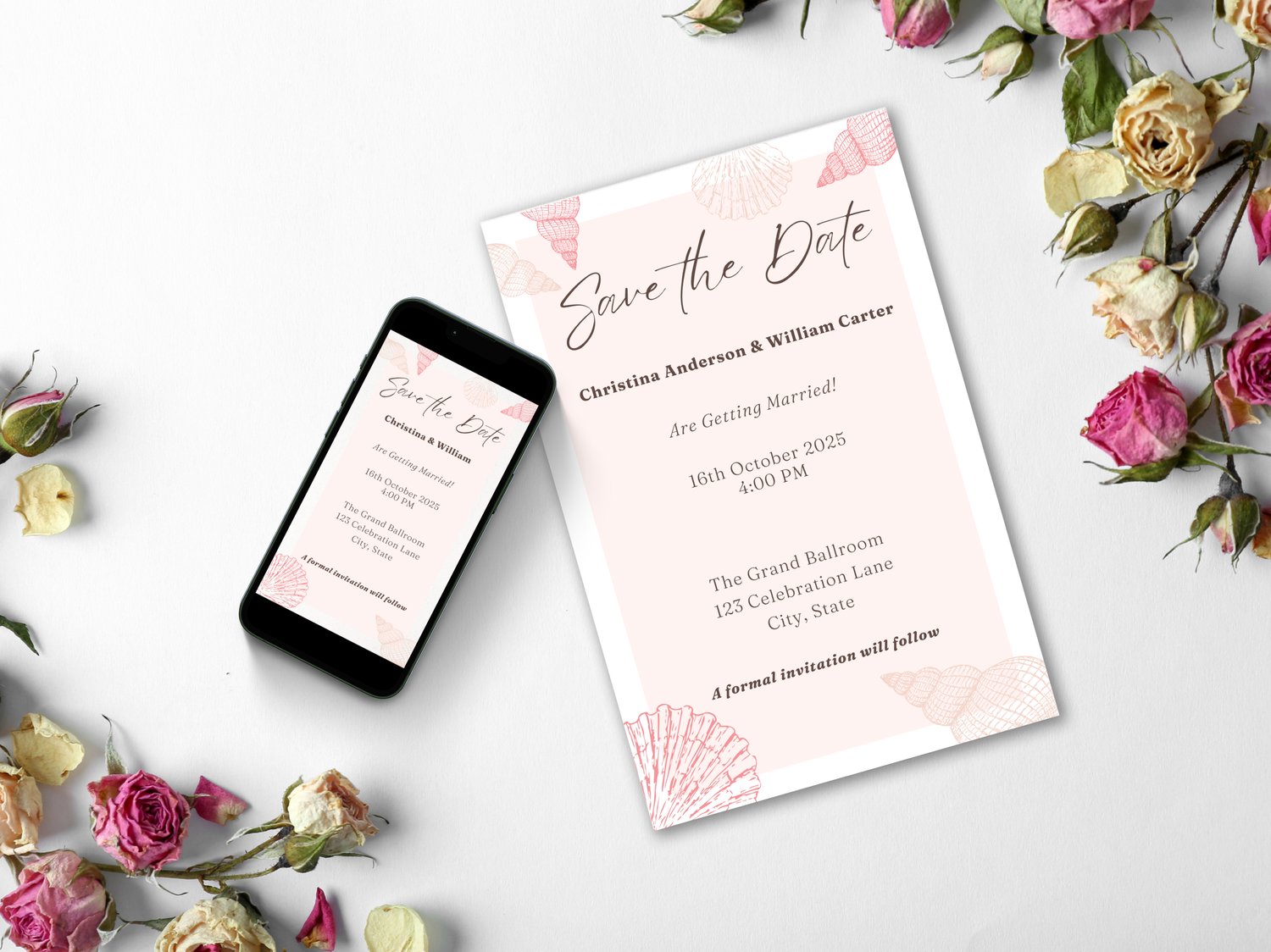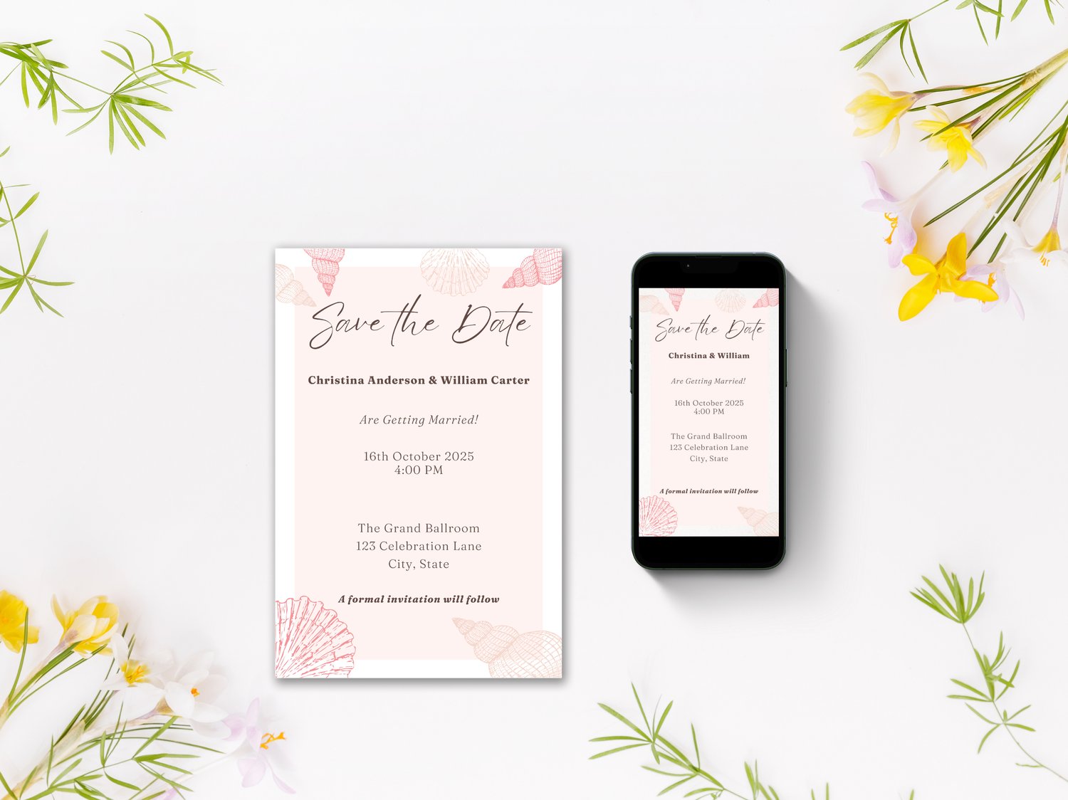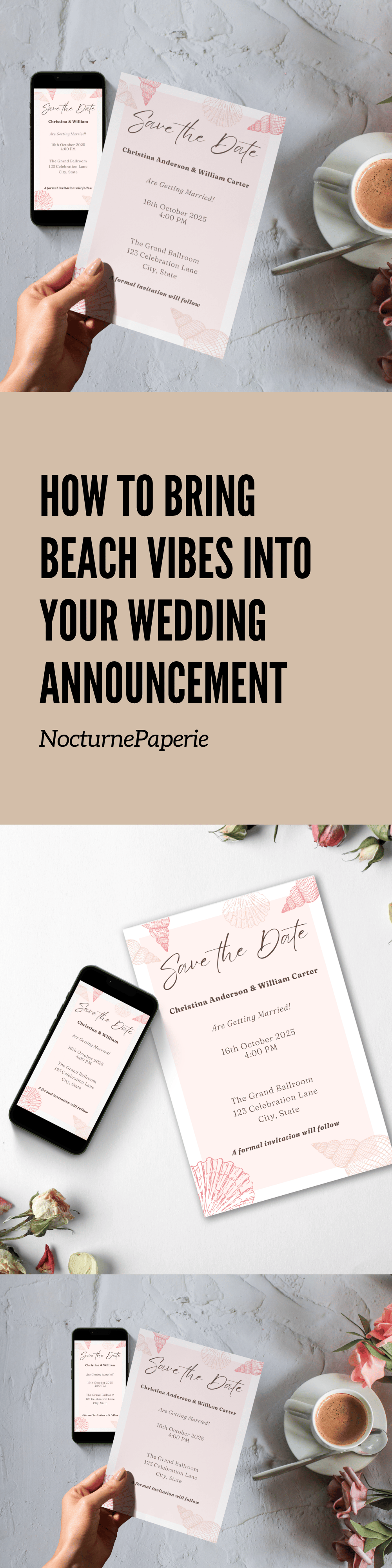 Capture the spirit of the sea with this beach wedding Save The Date digital invitation. Featuring a summer ocean theme, this editable Canva template is perfect for sending stylish email invites to your guests. It’s part of our seasonal collection on NocturnePaperie—explore other seasons like Winter, Spring, and Autumn.