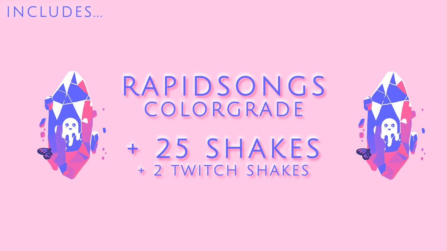This pack includes the official RapidSongs coloring and a full collection of custom-made shake presets for After Effects.