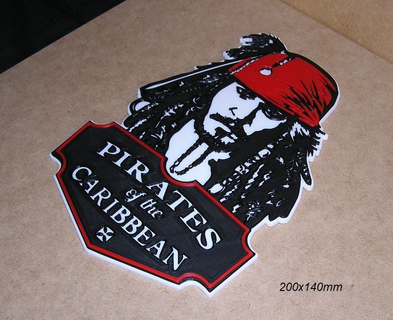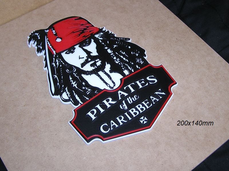 Pirates of the Caribean Poster, Sign, Logo of the movie, these STL and Gcode files have been created to be printed in various colors with any FDM type printer. The color changes have been made with the Elegoo Neptune 3 Pro printer, but they can be printed on any printer.