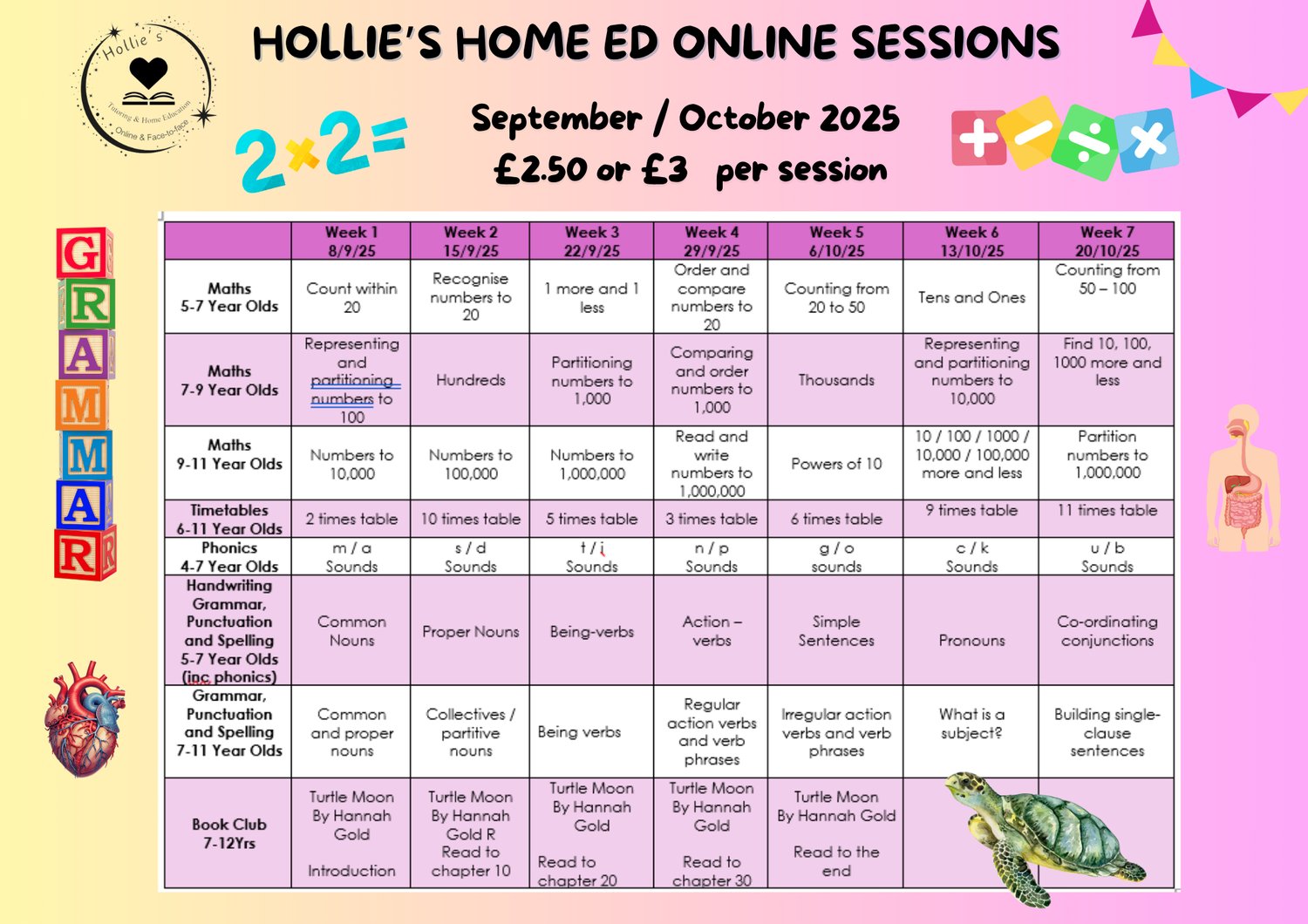 Overview of all sessions for September / October 2025