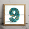The number 9 marble blue green gold