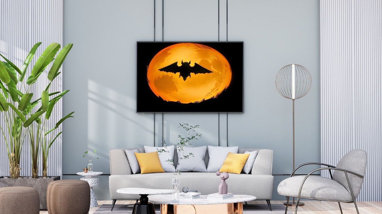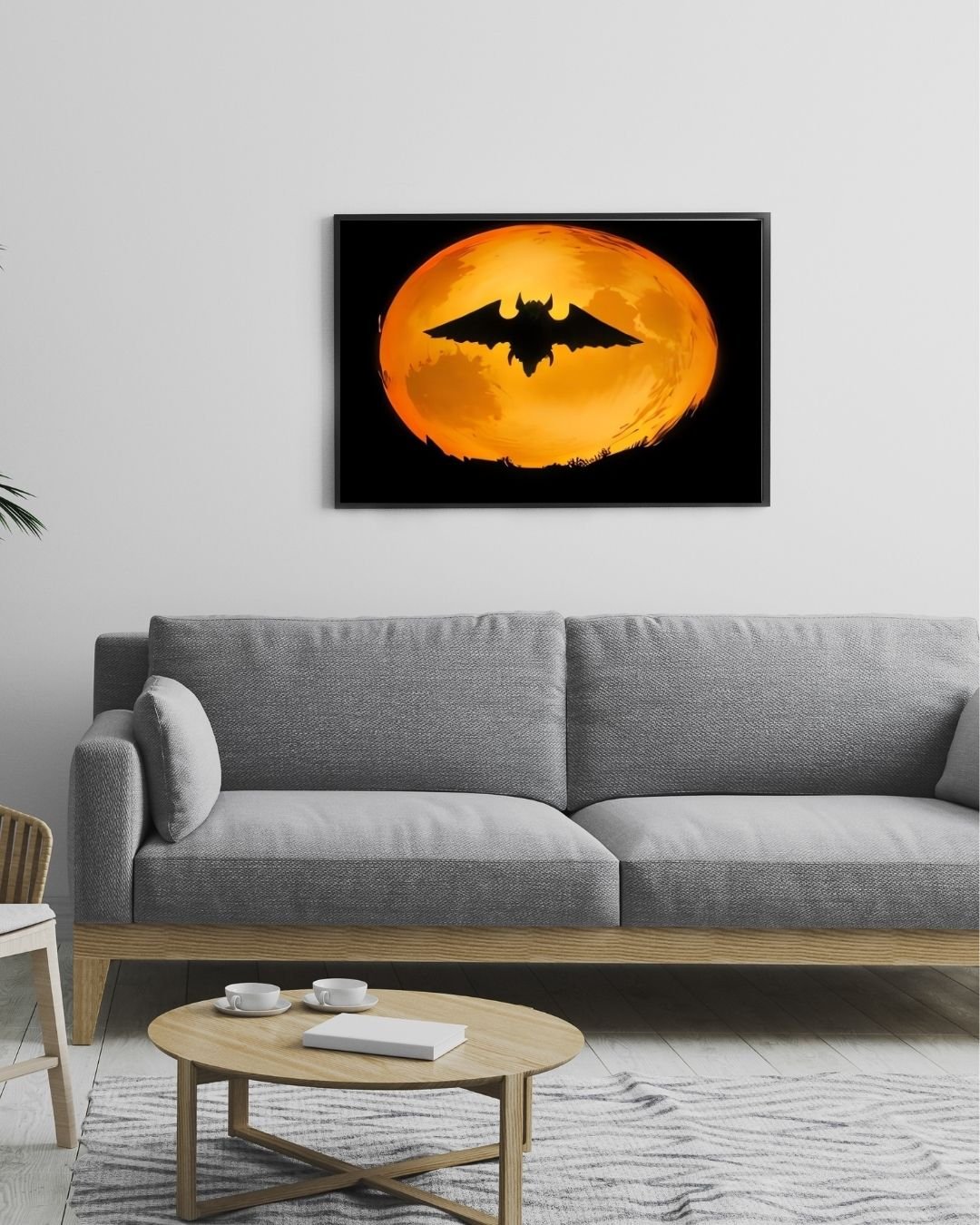 Bring a touch of eerie elegance to your Halloween celebration with this stunning digital print. A dramatic full moon and a flying bat silhouette create a hauntingly beautiful scene that instantly captures the spirit of the season.