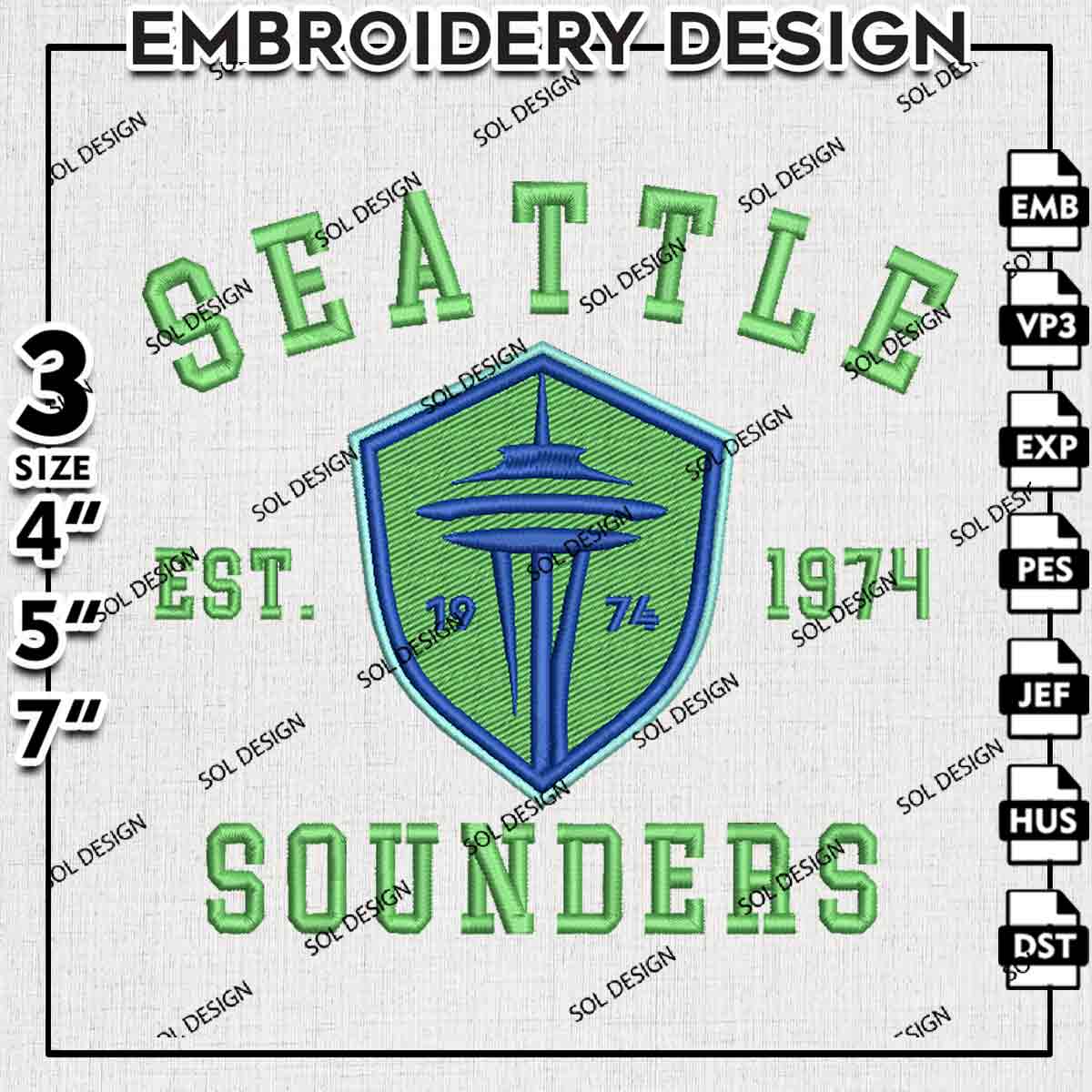 MLS Seattle Sounders FC Est 1974 Logo Embroidery Designs, Seattle Sounders FC Embroidery Files, MLS Seattle Sounders FC Logo Embroidery, Major League Soccer Machine Embroidery Design, Digital Download