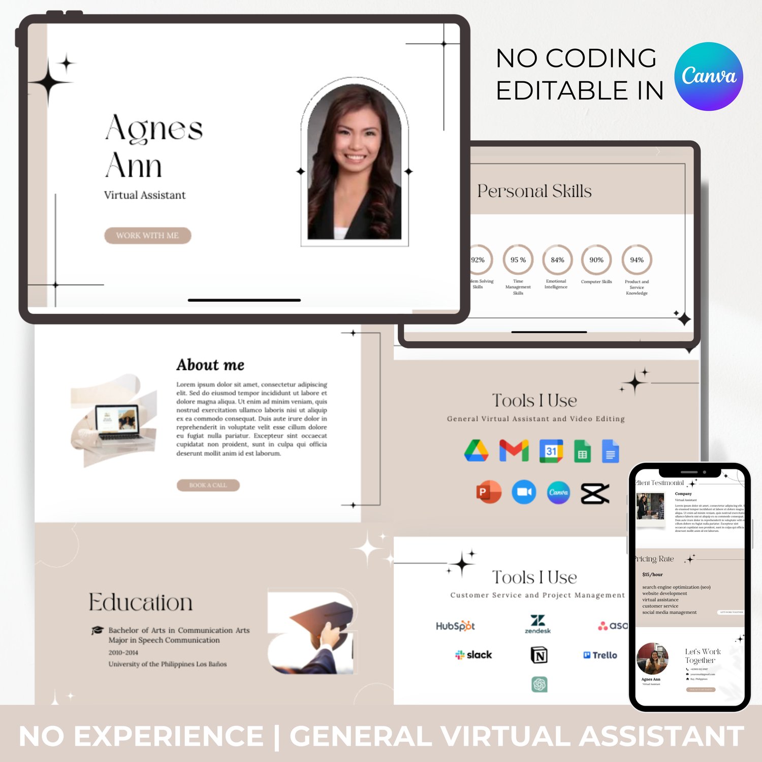 Editable Canva Website Template for Newbie Virtual Assistants & Freelancers