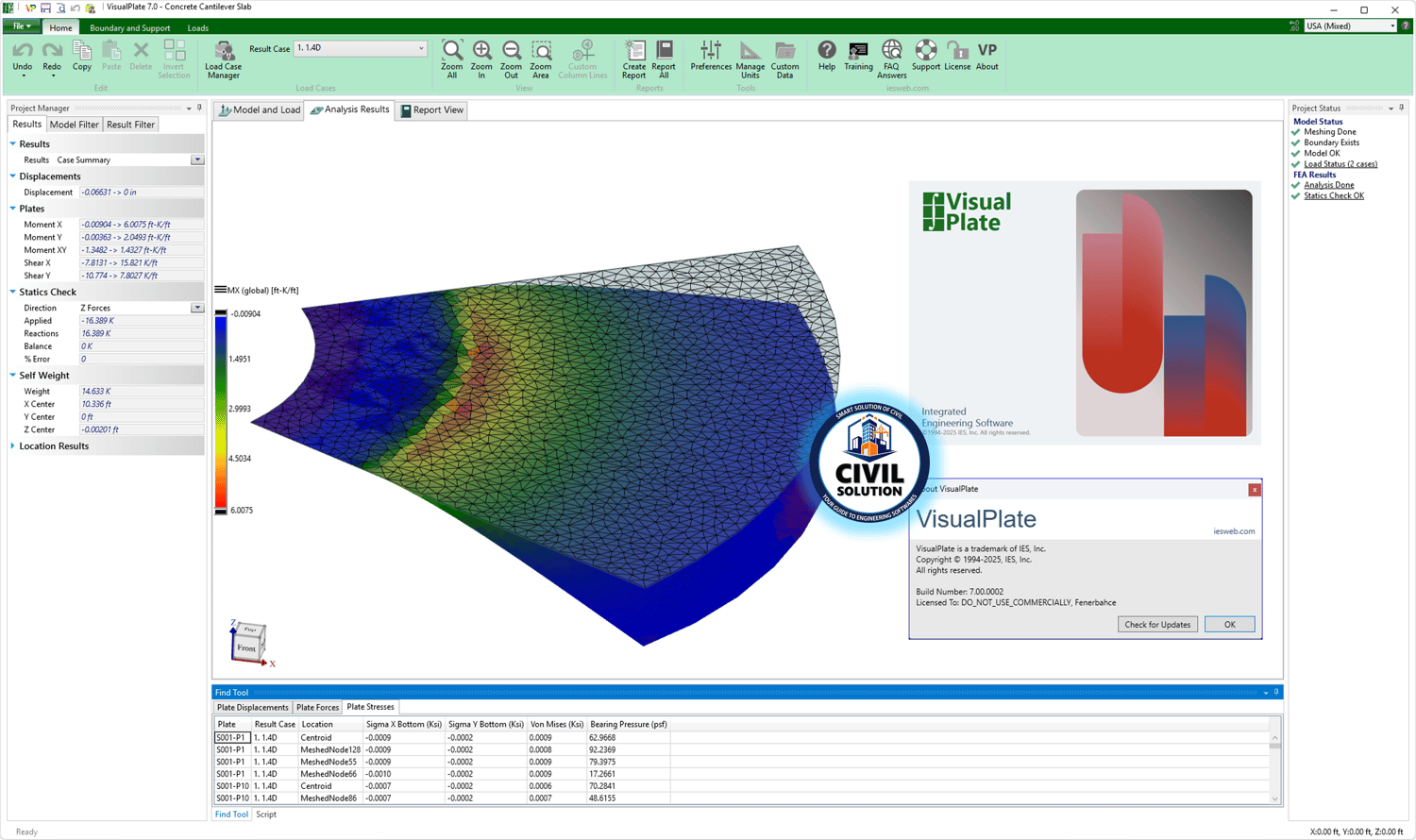 🏙️ IES VisualPlate v7.00.0002 is an advanced finite element analysis tool designed specifically for plate bending problems across various materials. It supports complex plate geometries and load cases with point or line supports and provides detailed analysis of displacements, shear forces, and bending moments.