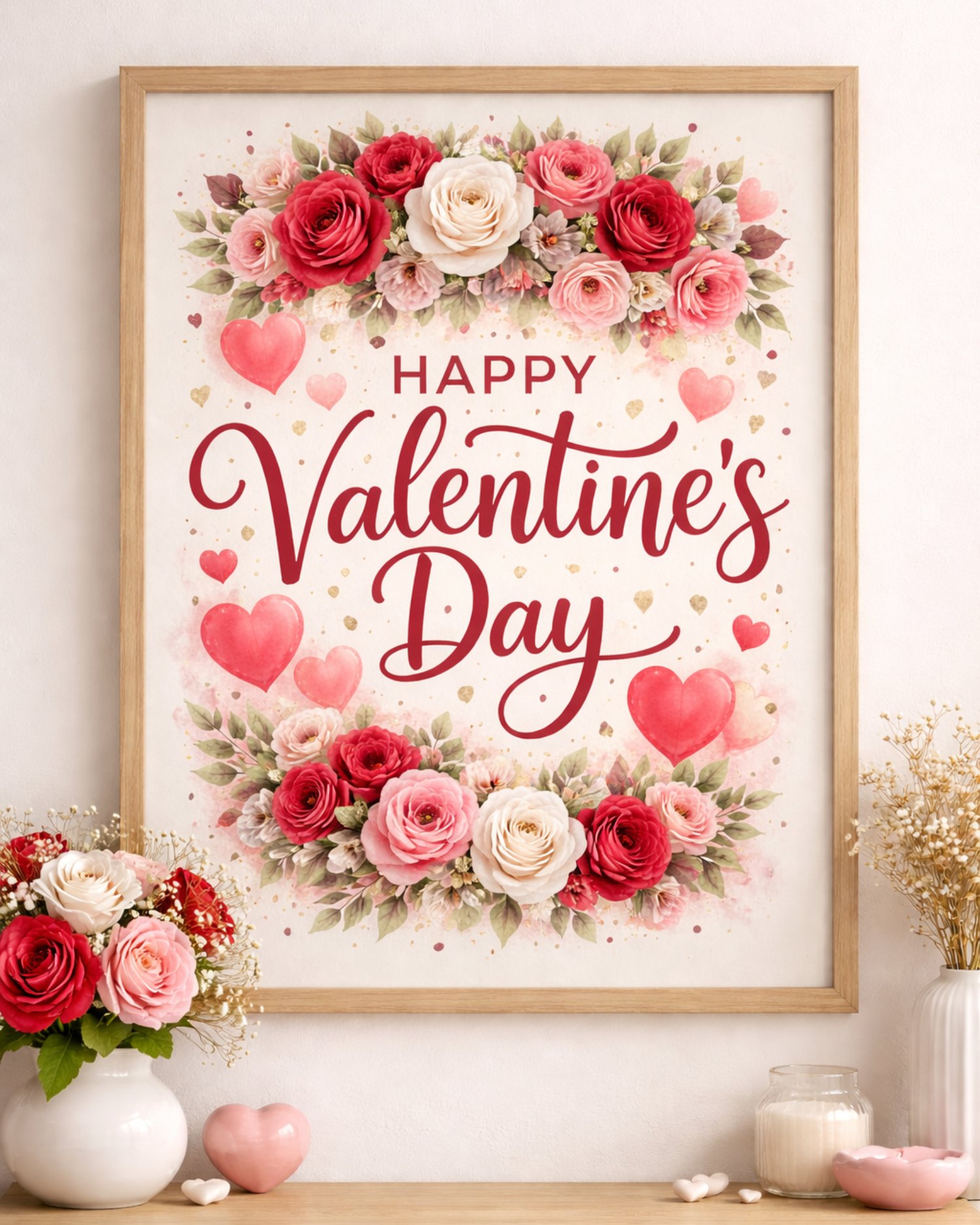 Create a warm, loving atmosphere this Valentine’s Day with this beautiful printable wall art collection. This digital set features romantic hearts and roses in soft pink, red, and white tones—perfect for seasonal home décor, gifts, or festive displays.