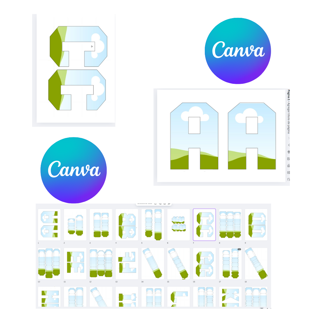 PACK DE LETRAS 3D EN EDITABLES EN CANVA TIENEN UNA MEDIDA DE 14CM