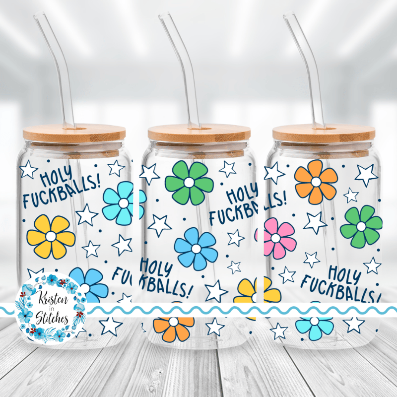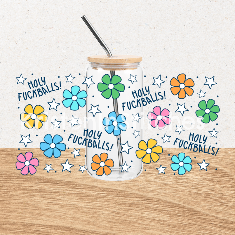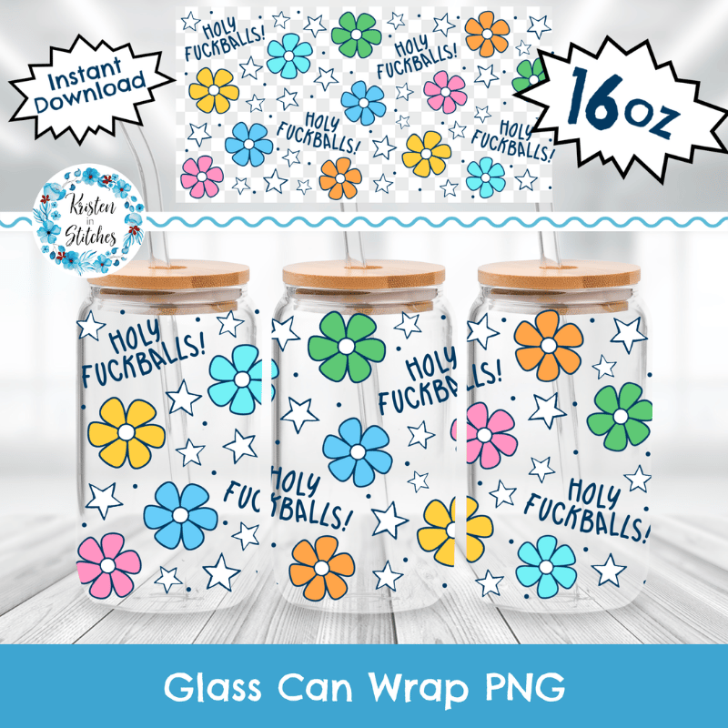 Holy Fuckballs Glass Can Wrap Transparent Cup PNG, Sweary Sassy Floral