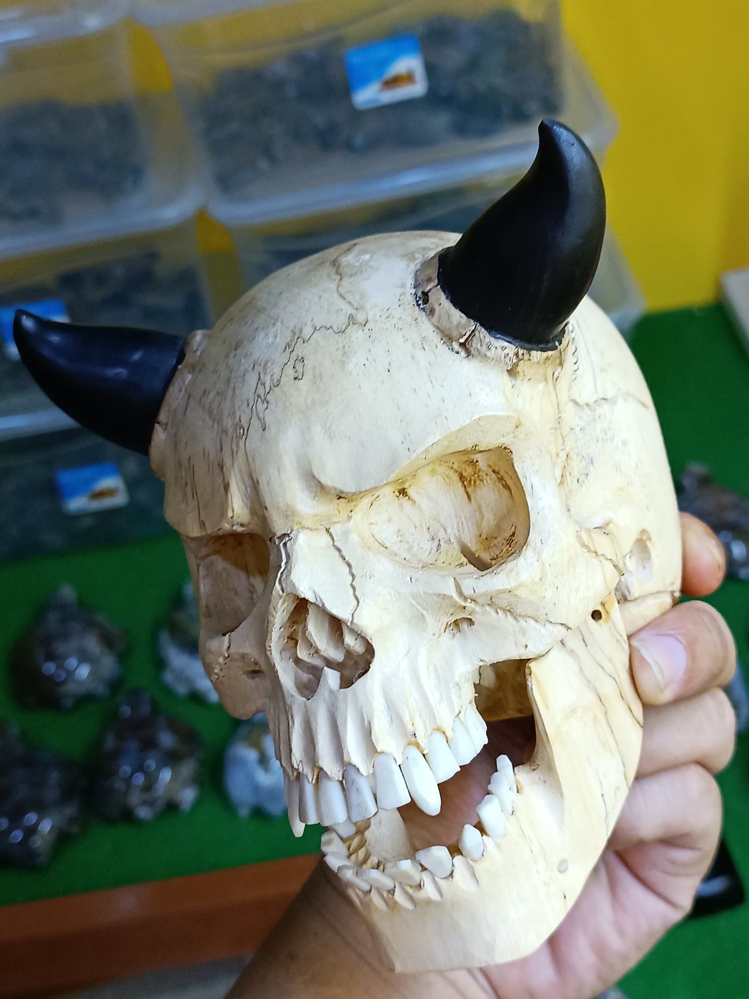 Devil skull carving