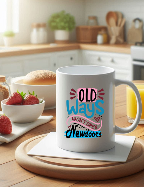 Step into growth and change with this empowering custom mug by Shamrock Kustomz! Featuring the inspirational phrase "Old Ways Won't Open New Doors," this mug is a daily reminder to embrace new possibilities. Perfect for your morning coffee or tea, it’s designed to motivate and energize your journey toward success. A great gift for dreamers and doers alike!