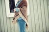 One size: approx. 172.5 cm/69” wide and 80 cm/32” long at center spine (without fringe).