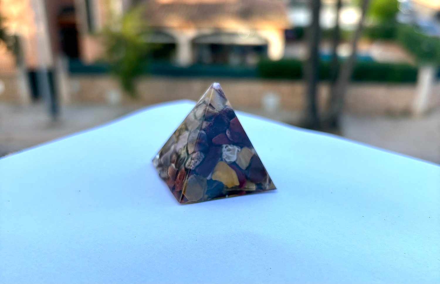Ein Orgonit ist eine Art Pyramide, gefüllt mit Edelsteinen zu den jeweiligen Themen. Er besteht aus Epoxidharz und es daher sehr beständig!