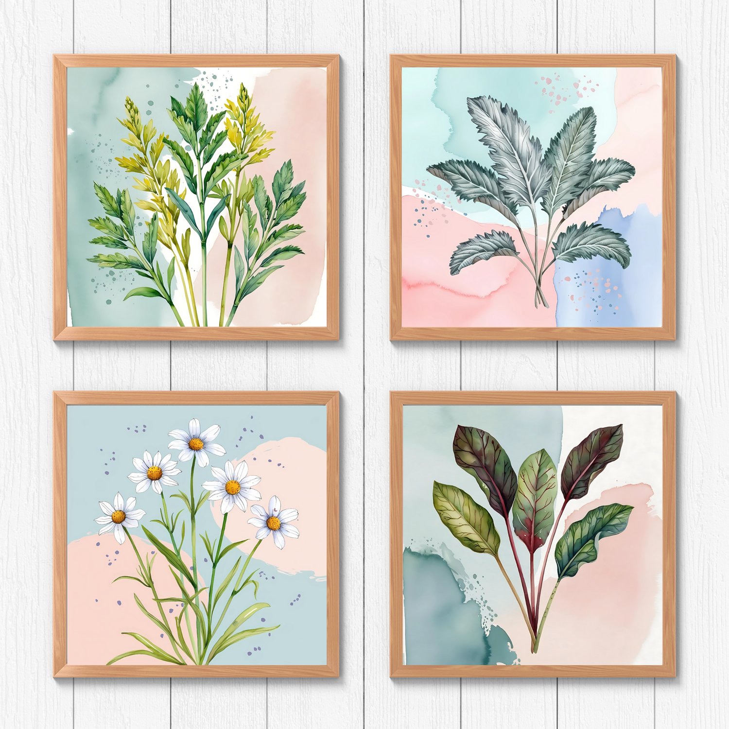 30 Botanical Watercolor Backgrounds – Powder Blue & Blush Pink Herb Illustrations