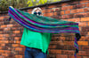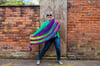 Rainbow Relay is an elongated crescent shape designed to show off mini skeins, gradients and lovely leftovers.