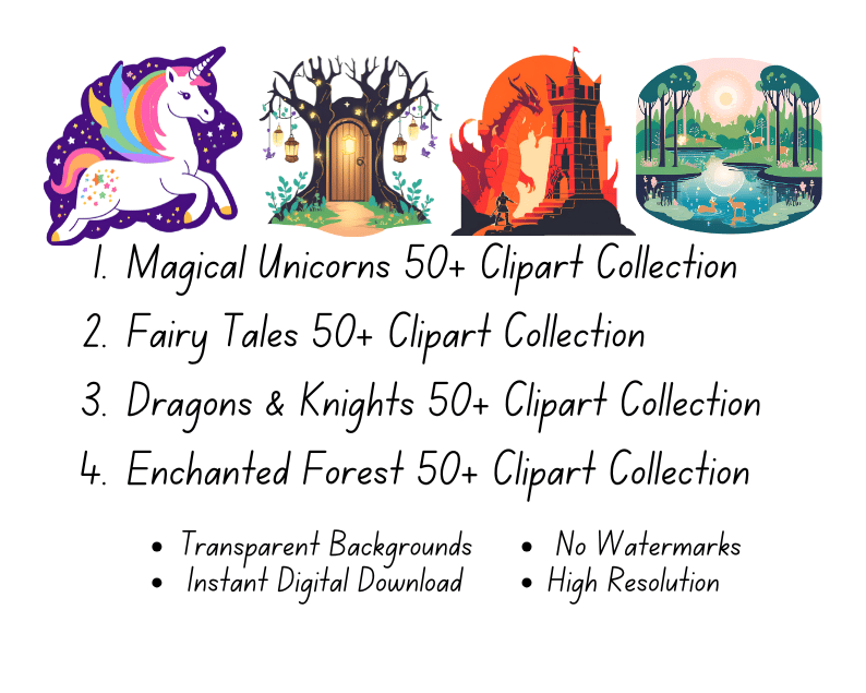Fantasy Clipart Bundle Collection | 12x12 Inches | High-Resolution Digital Printables | Instant Download