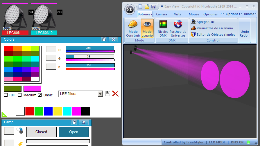 Esta Librería SSL2 está optimizada para trabajar con Magic 3d Easy View. Es decir para ver una representación 3D de las secuencias que estemos realizando con Freestyler, QLC+ o cualquier otro soft que se conecte con Magic 3d.