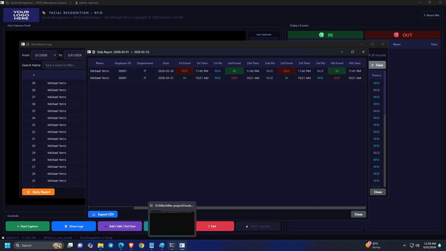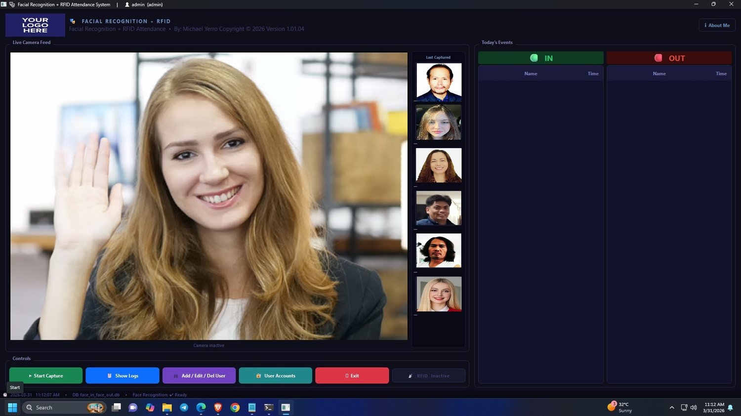 Face In / Face Out is the only Windows attendance software that runs AI face recognition and EM4100/125kHz RFID card scanning at the same time — from a single PC, a single screen, and a single license.