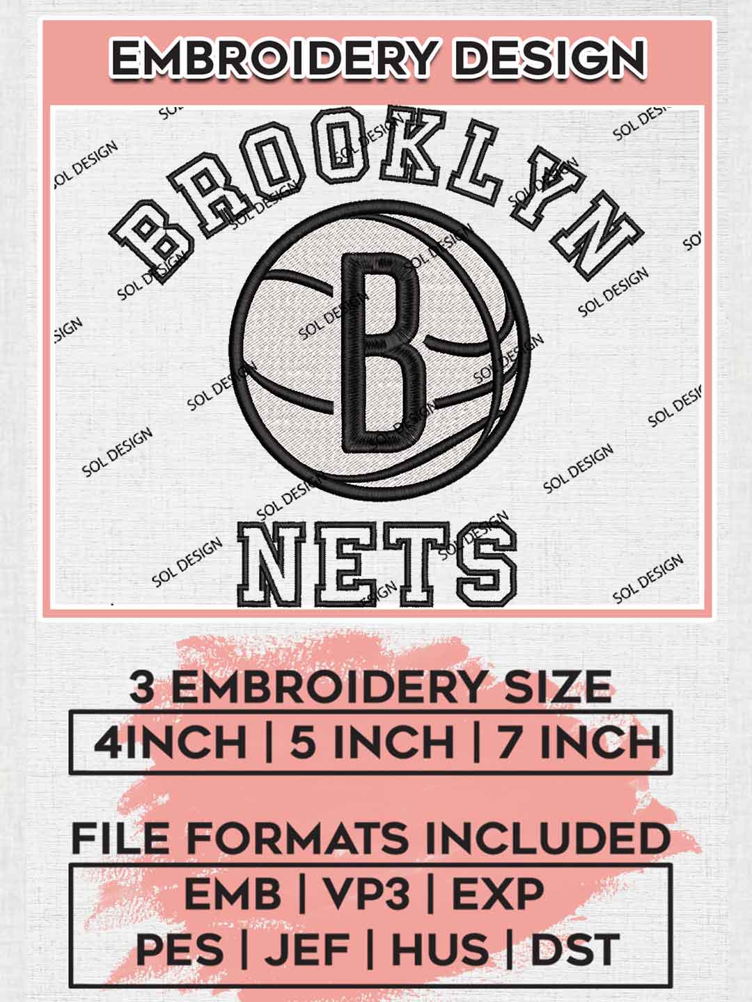 NBA Brooklyn Nets Team Word Mascot Logo Embroidery Designs, Brooklyn Nets Basketball Team Embroidery Files, NBA Nets Team Logo Embroidery, NBA Basketball Team Machine Embroidery Design, 3 sizes, Digital Download