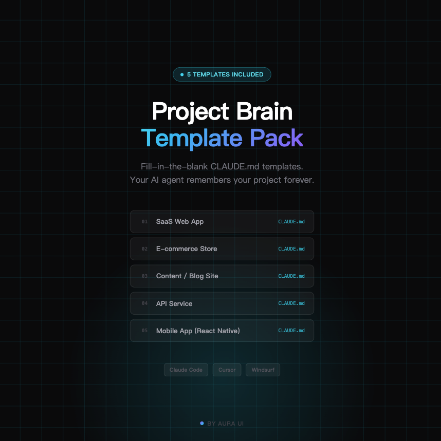 Project Brain Template Pack — CLAUDE.md for Non-Technical Founders