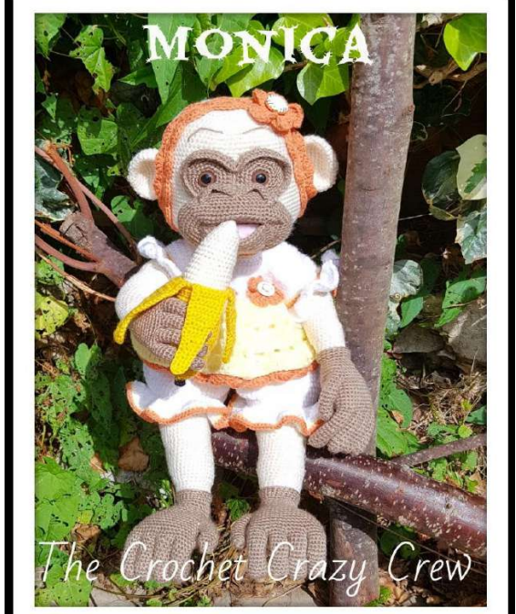 We would like to introduce to you ‘Monica’ she is made up of basic stitches and rounds, this pattern was written and designed in DK Terms and Monica stands at approximately 21” tall, so if you are using Aran/ Worsted 10ply the end results will turn out bigger as she will stand at approximately 33” tall, there are 35 pages in this pattern with many descriptions and images to help you along the way,