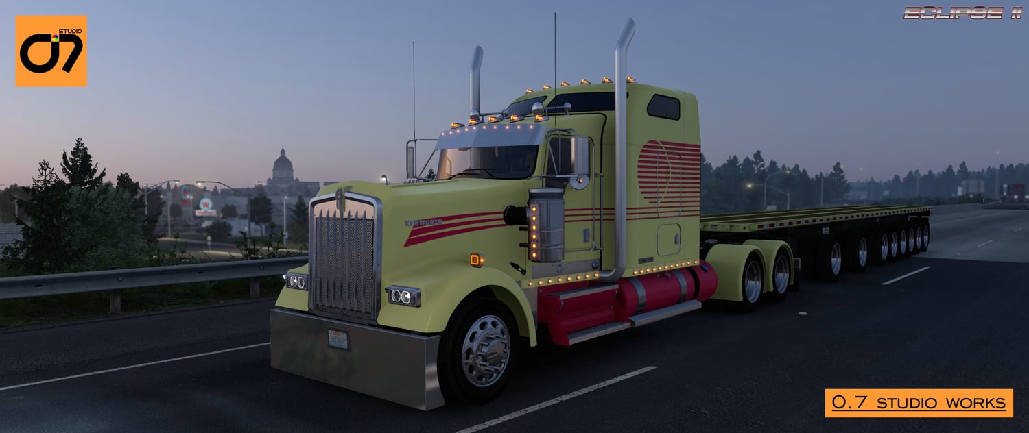 Compatibility: Crafted for the SCS version of the Kenworth W900L, the Eclipse series seamlessly integrates with the stock W900L, the W900 Tuning Pack, and any future tuning packs released by our studio. Embark on a journey through time and style with the Eclipse series and may your trucking adventures be as thrilling as they are stylish.