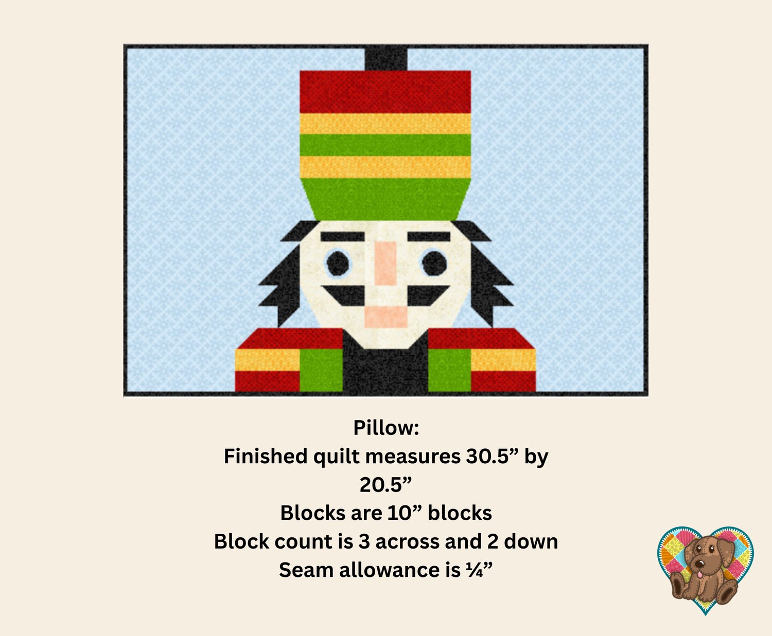 Christmas Nutcracker Pillow Sham Quilt Front Pattern