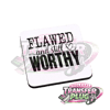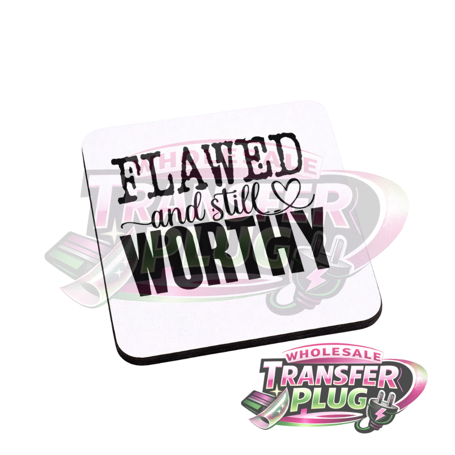 Inspiring 3-inch UV DTF transfer with the message Flawed and Still Worthy.