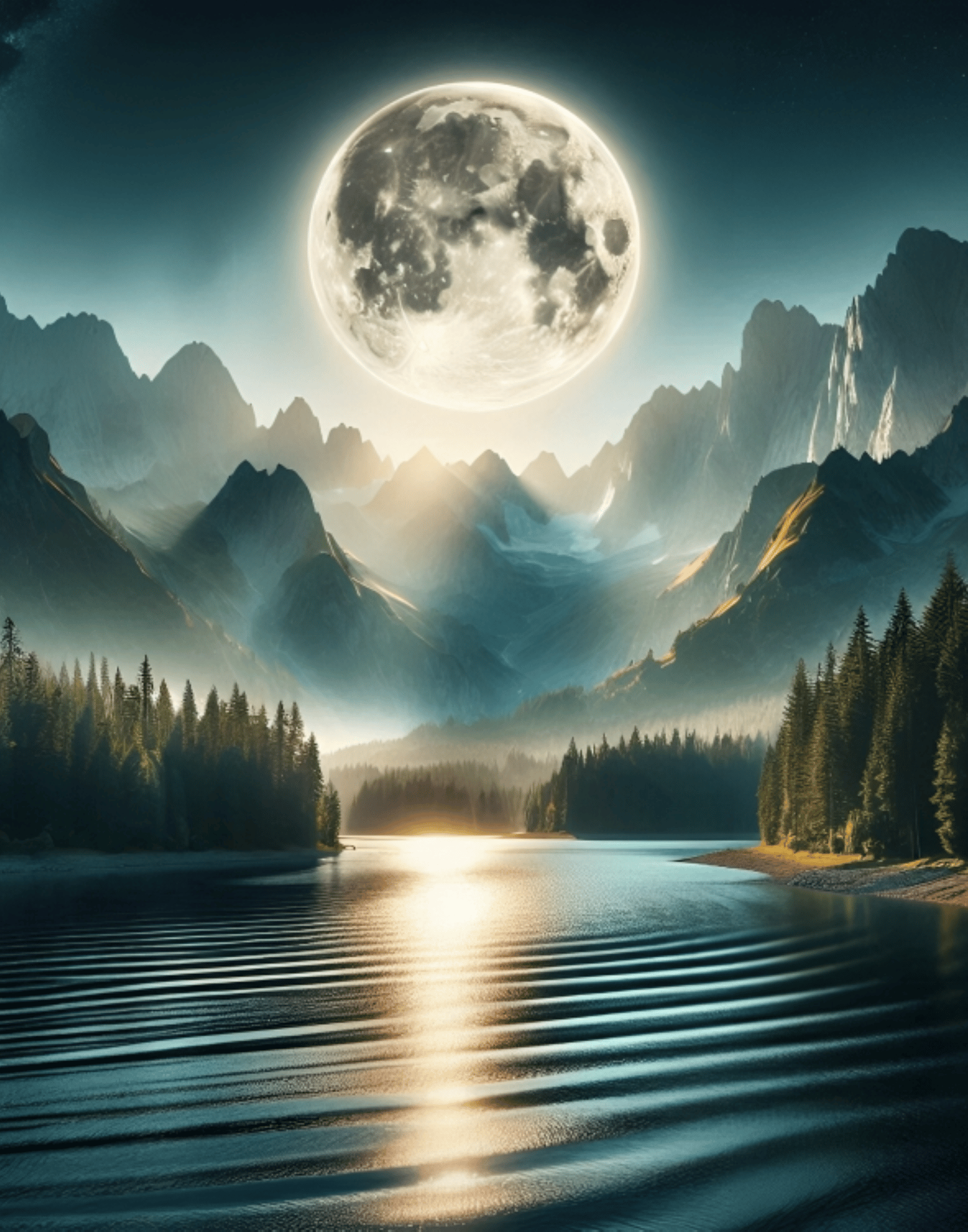 Moonlight, Starry Sky, Night Forest Mountain , nocturnal Beauty, Full Moon, Twilight, Serene Lake Painting, Calm Forest Painting, Mindfulness, Vintage Nightlife Nature, Natural Wall Art, Vintage Landscape, Nostalgic Nature, Cool Nature, Rustic natural L