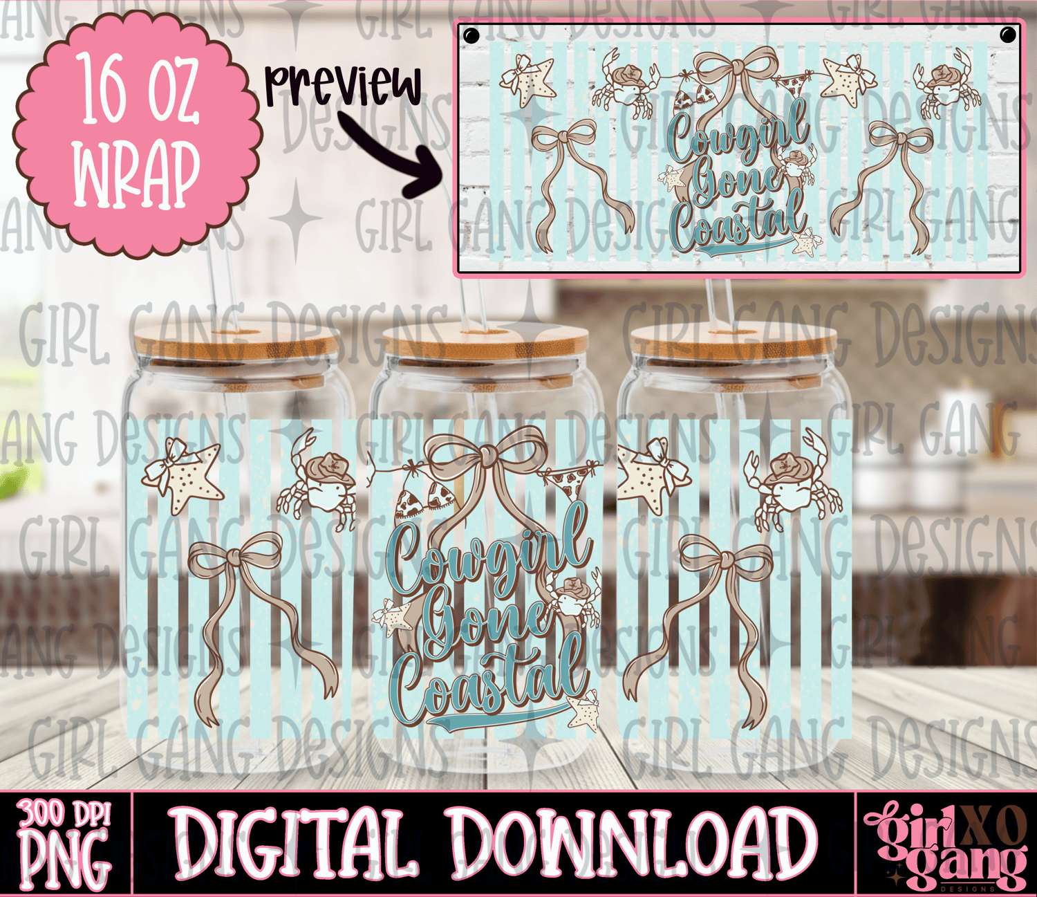 Cowgirl gone Coastal 16 oz tumbler wrap png beach country
