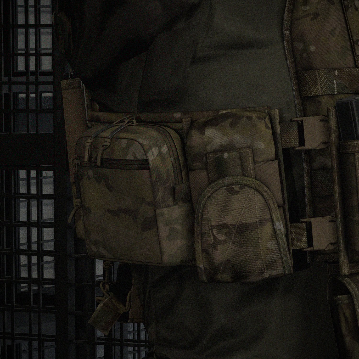 Features includes an SSE bag in front zipper pocket, Built in AVS™, MOLLE, and belt attachment features. Holds either Up to 8 double stack full-size pistol magazines (with optional inserts, one insert per 2 mags), Individual medical kit, 5590 battery, PVS-15 NVG, ANVS-9 NVG, Fusion goggles, Five flashbangs, 100-round SAW drum, Five 40mm rounds (with optional insert), Fifty loose 12 gauge rounds (2.75”), Twenty 12 gauge rounds in optional inserts (5 rounds per insert), 6”x6” MSAP side plate.