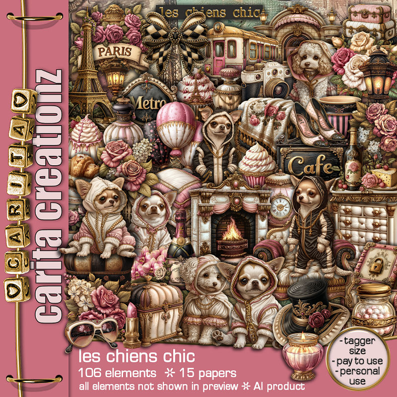 This kit comes with 106 (incl. 8 frames) elements and 15 papers.