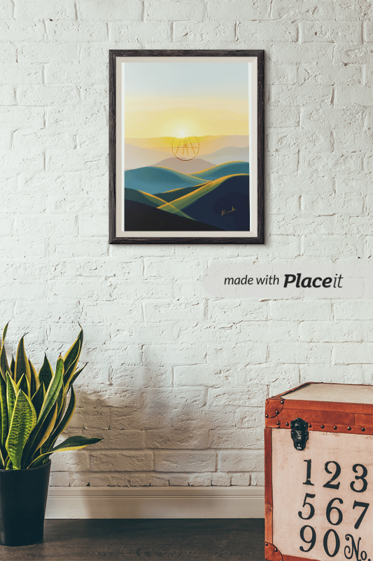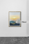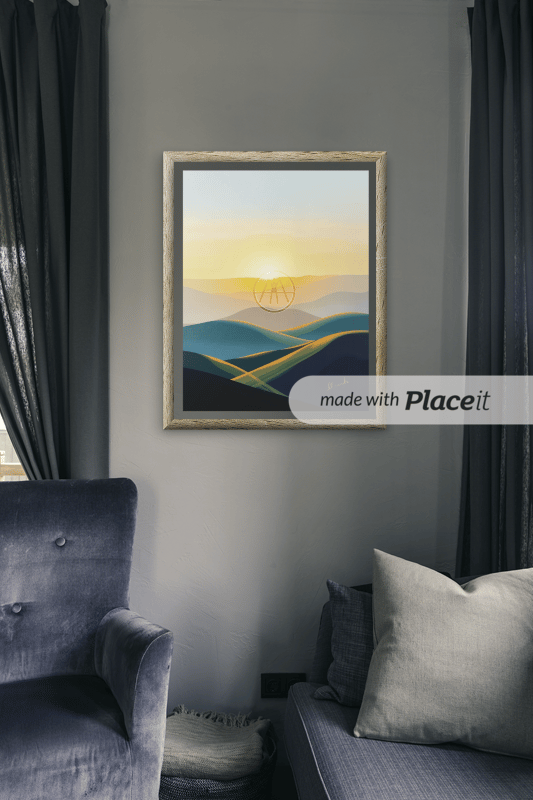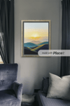 Golden Horizon, sunrise wall art, nature inspired painting, calming wall decor, modern landscape print, nature inspired serenity collection, Manendra’s Art Gallery, mindful home decor, peaceful art