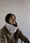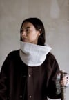 This cowl is knit in the round into a tube that is twice the height of the fin- ished cowl. The first half of the cowl is the outer layer featuring the cross- hatch pattern, knit with the larger needle. The second half of the cowl is the lining, worked in stockinette stitch with the smaller needle. The bind off edge is grafted invisibly to the provisional cast on edge.