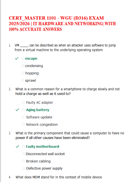 CERT_MASTER 1101 - WGU (D316) EXAM 2025/2026 | IT HARDWARE AND NETWORKING| WITH 100% ACCURATE ANSWERS