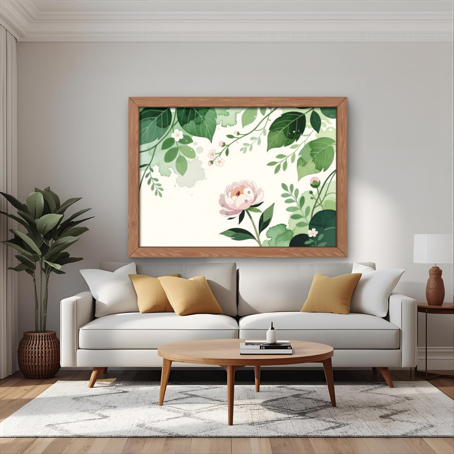 High-quality digital wall art featuring a calming nature scene, designed in a 4:5 ratio (3000x2400 px). This printable artwork showcases vibrant natural elements and is perfect for home decor or office walls. The file is provided in high resolution, suitable for professional printing. The artwork can also be easily resized to fit other popular aspect ratios (2:3, 3:4, 11x14), making it versatile for different frame sizes and interior settings.