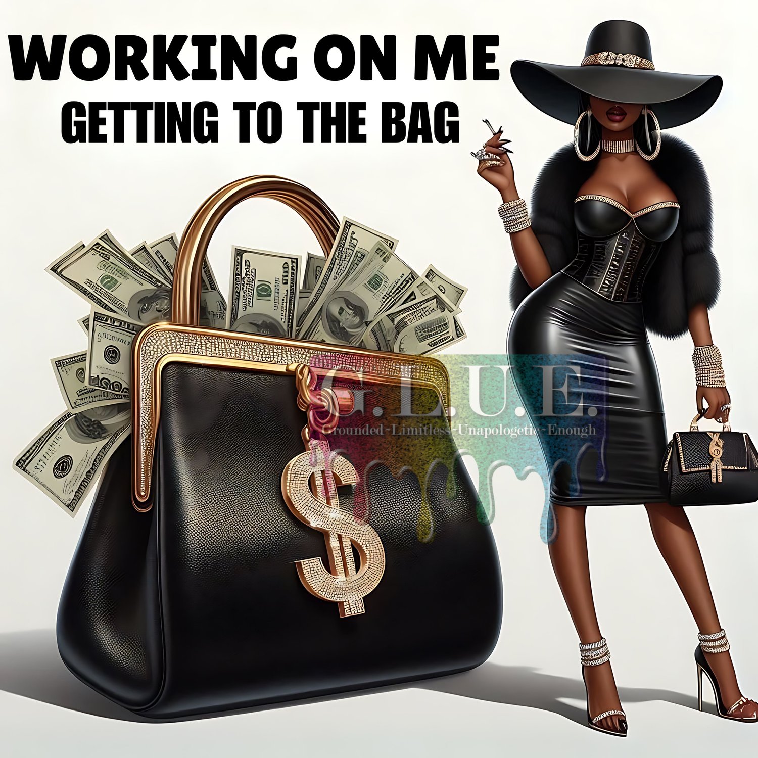 Workin’ on Me – Getting to the Bag BLUNT PNG | Luxe Black Woman Glam- BLUNT | Boss Babe Self-Growth Digital Art